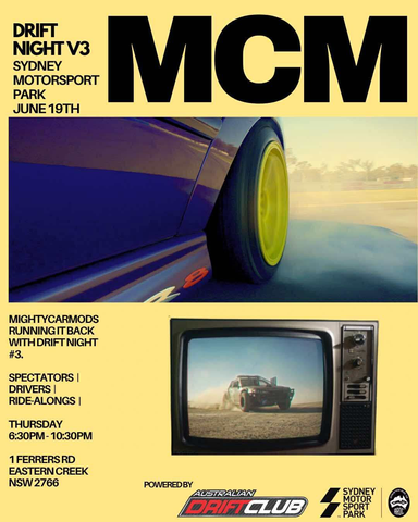 Mighty Car Mods is partnering with The Australian Drift Club so you can join us for the ultimate introduction to the thrilling world of drifting at the MCM Drift Night #3 - taking place on the Wet Skid Pan at Sydney Motorsport Park. Whether you’re a complete novice or just looking to refine your skills, this event is designed to provide a safe and exhilarating experience for first-time drifters and a good amount of skid time for those with more experience.