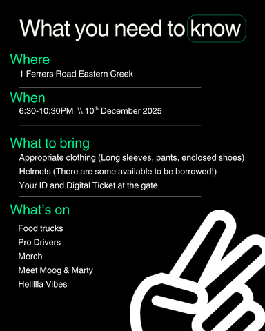 $80 - Extra Driver for 1 Car - Don't have a drift car but your mate does? Add 1 or 2 of these tickets on to a drivers ticket and have a skid.